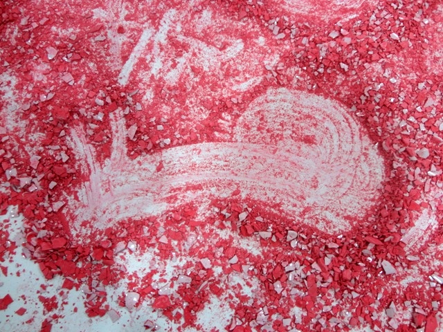 Berjalan di atas pecahan tersebut menimbulkan sensasi yang enak di kaki. Semacam gemas ingin membikin lebur pecahannya, juga semacam ingin menari random di atasnya (jika tidak malu karena ada Heru Hikayat--pengurus Platform 3 yang padahal sebenarnya acuh). Di tengah pecahan, saya juga menemukan potongan telinga boneka yang terbelah dua. Selain itu, saya juga meraba pecahan sehingga telapak tangan saya berwarna merah muda. Ternyata proses perabaan ini enak sekali karena testur pecahan yang cenderung empuk.